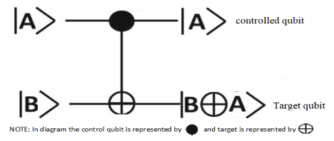 En la imagen se aprecia una puerta CNOT. Si el qubit de arriba está en 1, el de abajo cambia (aplica una operación NOT), siendo una de las operaciones fundamentales para la lógica cuántica.