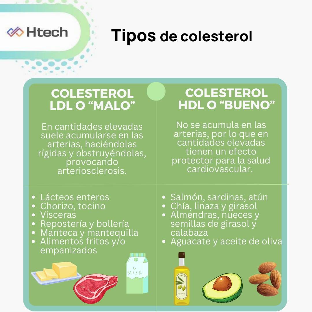 Grasas saturadas: son aquellas que se denominan “malas”, debido a que elevan el colesterol LDL y pueden generar una acumulación de colesterol en las arterias, aumentando el riesgo de sufrir un infarto o enfermedades cardiovasculares. Algunas fuentes son: mantequilla, queso, leche entera, carne roja, crema, aceite de coco y de palma.
